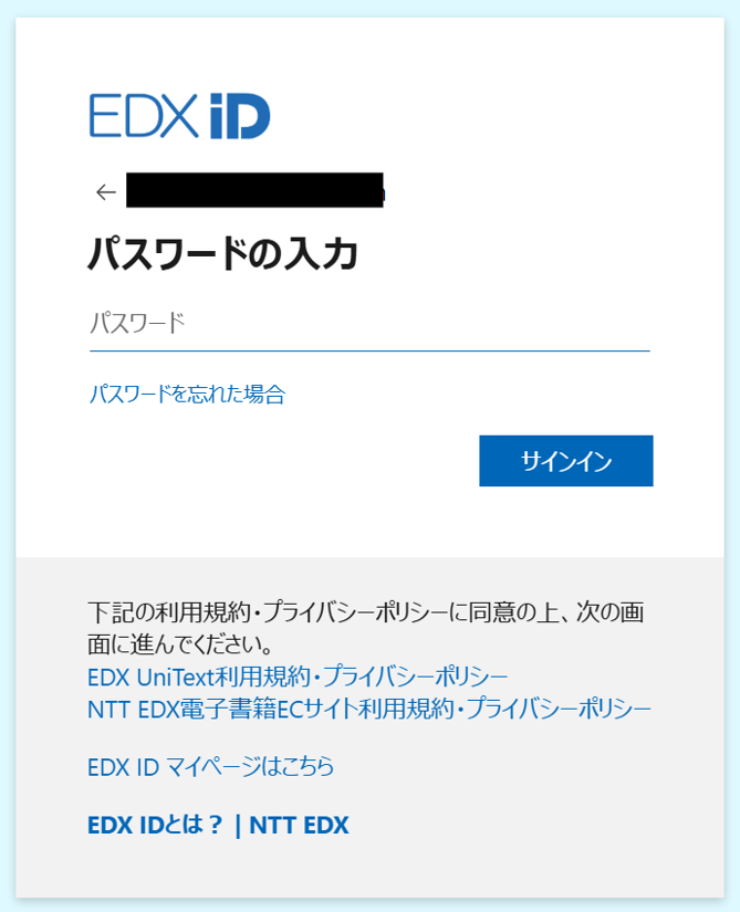 1:EDX UniTextからEDX IDでログインします。